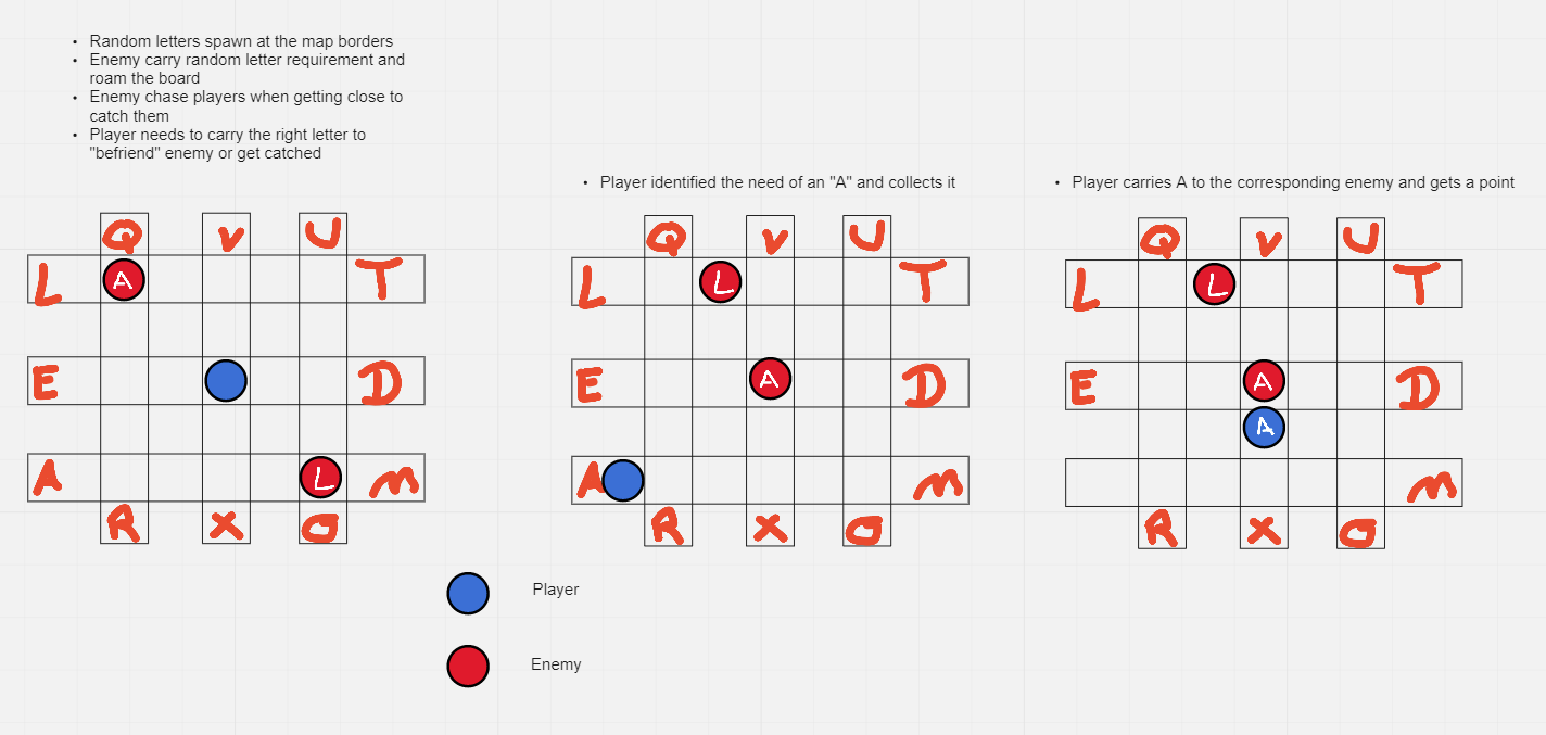 Visual Scripting was also new to me and probably the hardest part. But after some time and reading documentation and watching videos it clicked and I was able to finish my MVP tasks.The AI had to move and patrol the map and pick a random letter at start. Also I tried to get some experience with switch states and signals.